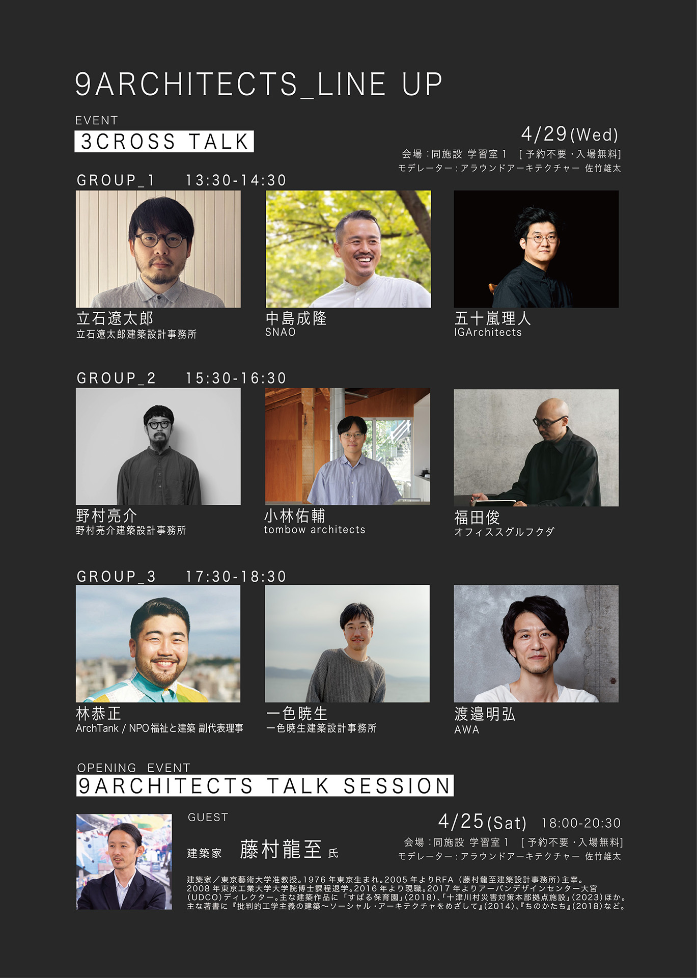 また、初日にはゲストに建築家の藤村龍至氏をお招きしてトークイベントを行います。