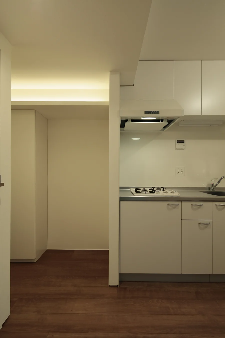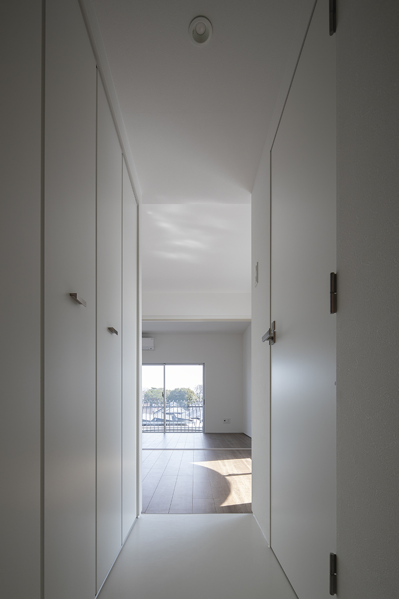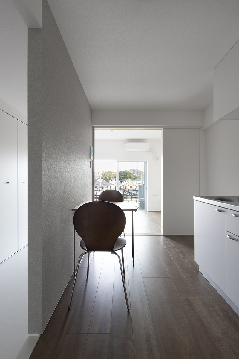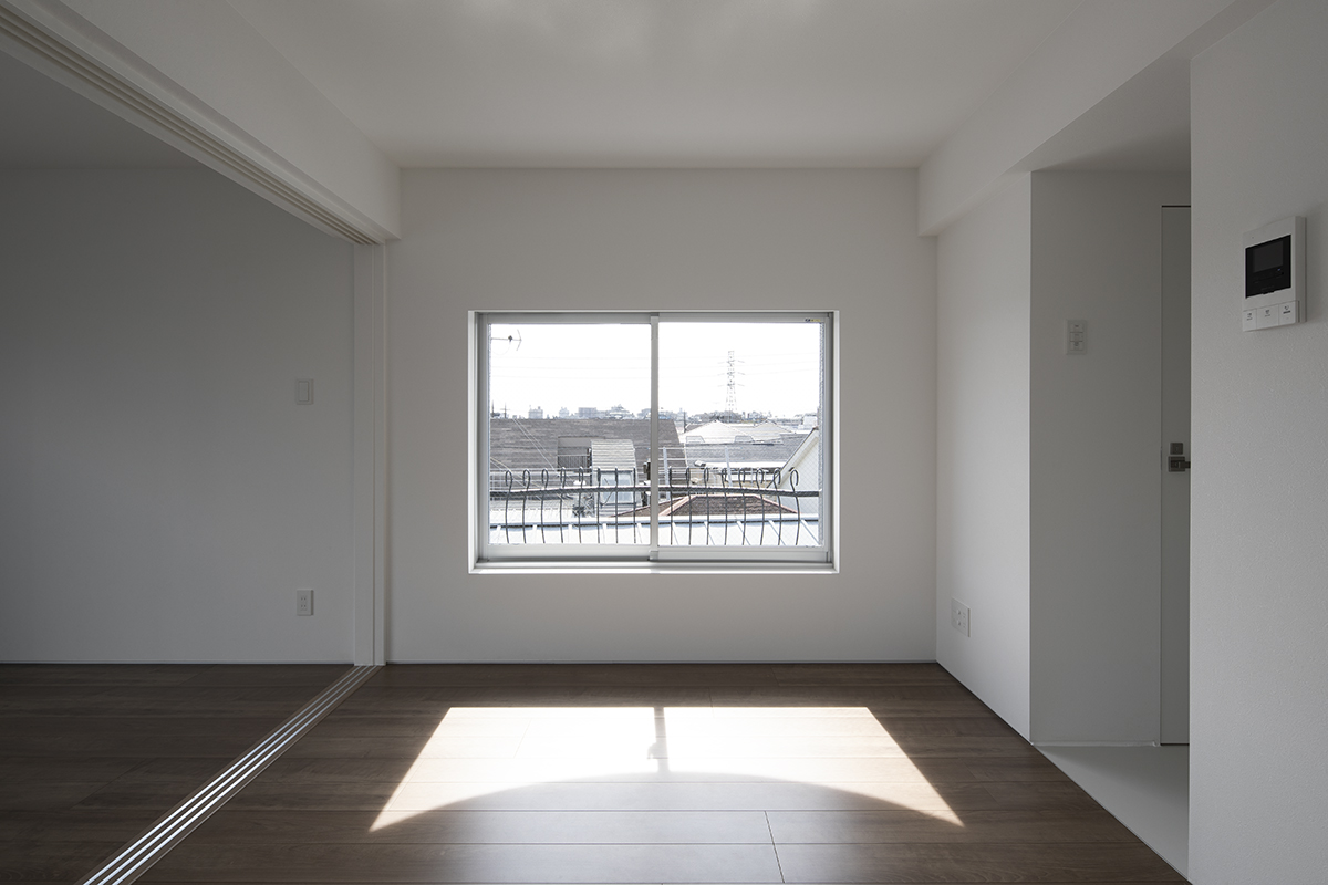 収益に直結する住戸計画は、既存の住戸割りを維持しつつ広い間口を活かし、回遊性や変化のある空間としています。寝室とユニットバスの動線上は、外の視線も気にならないパウダールームにもなっています。