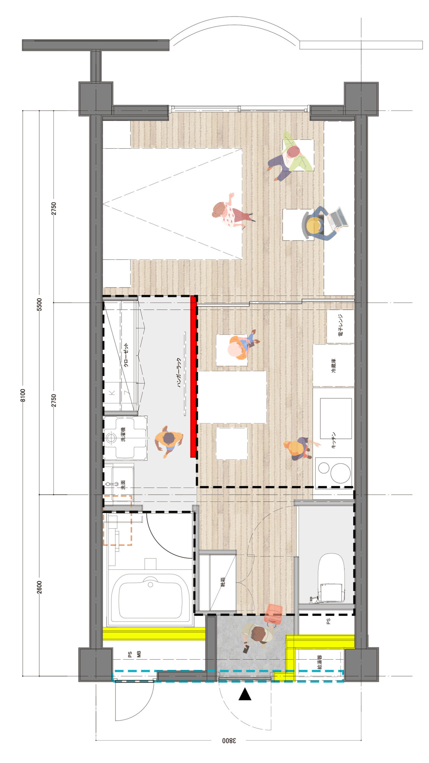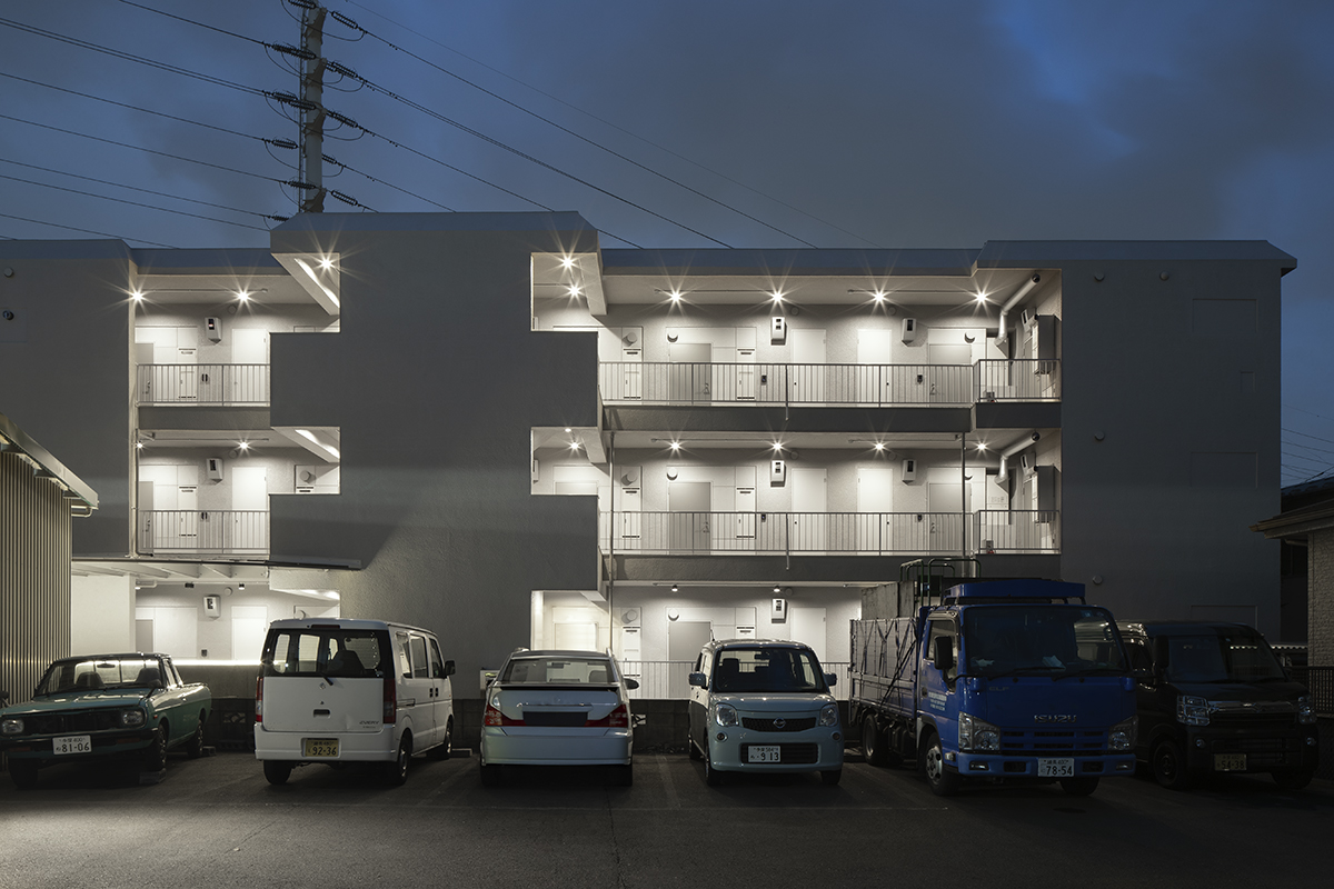 国内には住宅ストックは1,500万棟の住宅ストックが存在し、旧耐震はそのうち15%程度、230万棟にも上ります。また、近年は大半の新築建物が検査済証を取得しているものの、築古建物は多くが検査済証を取得していません(平成10年の時点ですら検査済証の取得率は4割に満たない)。3また、新築時は適法だったもののその後の増改築などで違反建築となっている事例は枚挙にいとまがありません。そして、これらの問題を抜本的に解決するには、多額の費用を賄うための長期融資が基本的には前提となるものの、耐震性や遵法性を含む複合的な問題をクリアしつつローンの返済を可能にする事業性というハードルが足枷となっているのが実情です。今回は、そのような社会的問題に対して取り組んだ作品です。