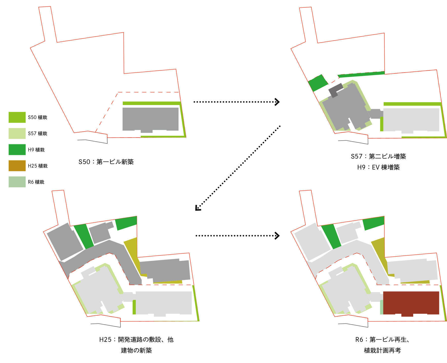 敷地は東京郊外の住宅地。半世紀かけて根付いた複数の建物や緑、人々が共存する豊かな環境が、時間をかけて育まれていました。