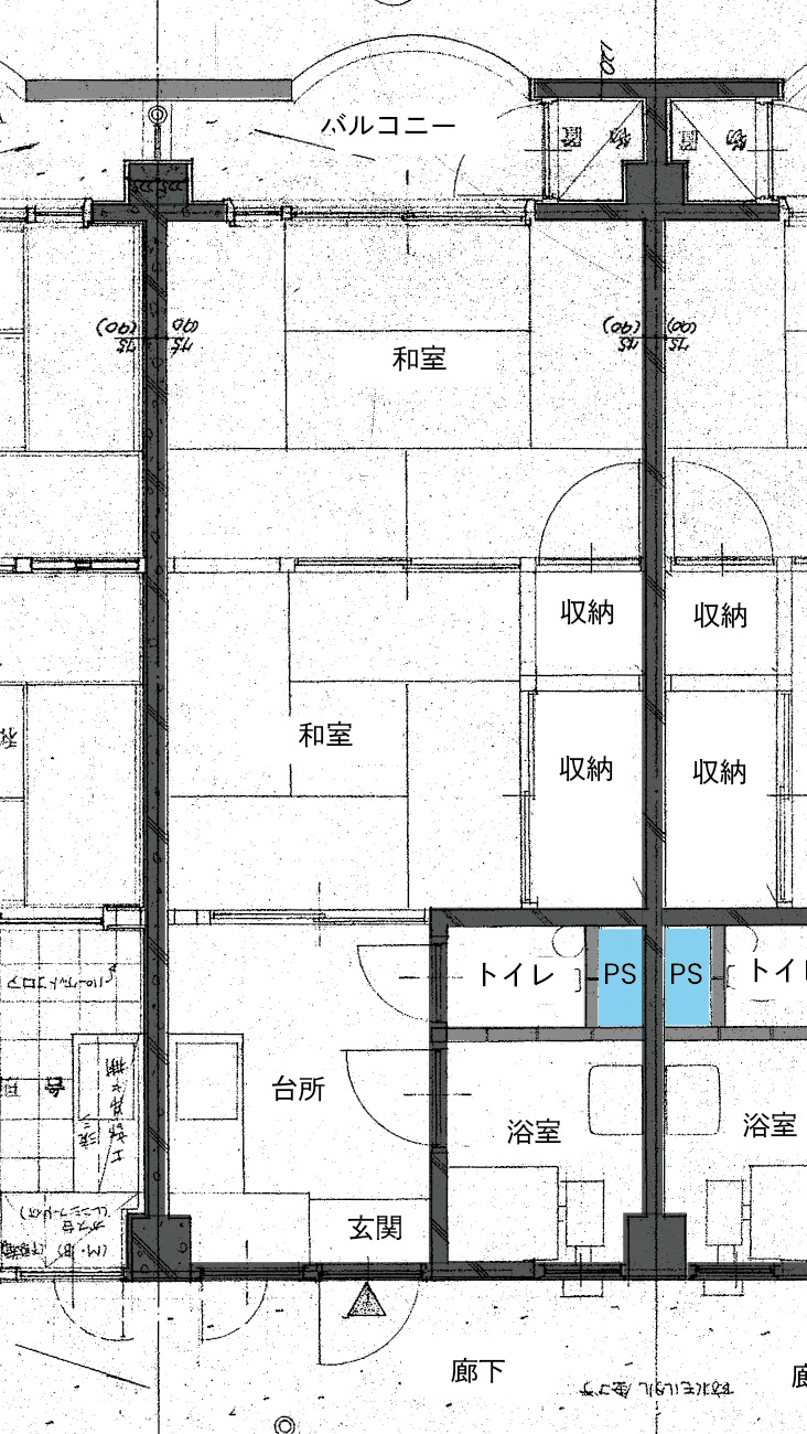 さらに、PSや水回りを屋外廊下側に計画することで、共用部から設備のメンテナンスができることや、スラブを貫通せずに横引き管を配管できるようにするなど、快適性や競争力を持たせつつ建物を長寿命化する工夫をちりばめています。