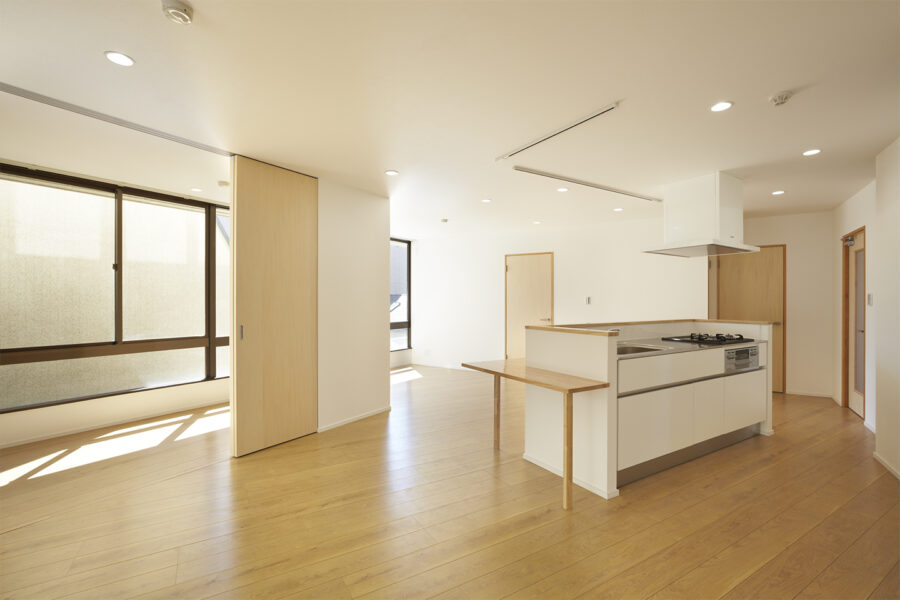 今回の工事を機に、オーナー家族はもともと住んでいた最上階の1区画から、新しくつくった住戸に引っ越しました。多少の騒音や粉塵と格闘することにはなりましたが、施工中に仮住まいを確保するよりも経済的な負担を抑えることを優先した施工計画です。